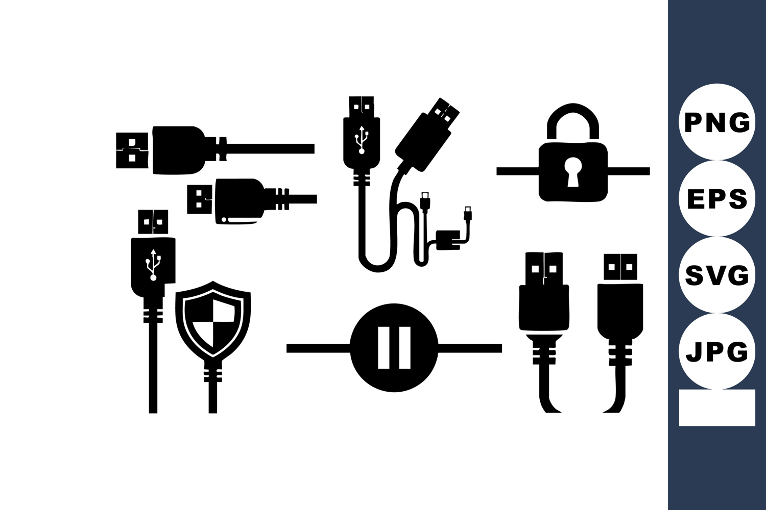 Usb Cable Connector Cable Connector Plug Usb Connector Port Data Transfer Security Security Lock Shield Digital Device Technology Wire Connection Interface Electronic Computer Accessory Adapter Communication Symbol Icon Black Flat