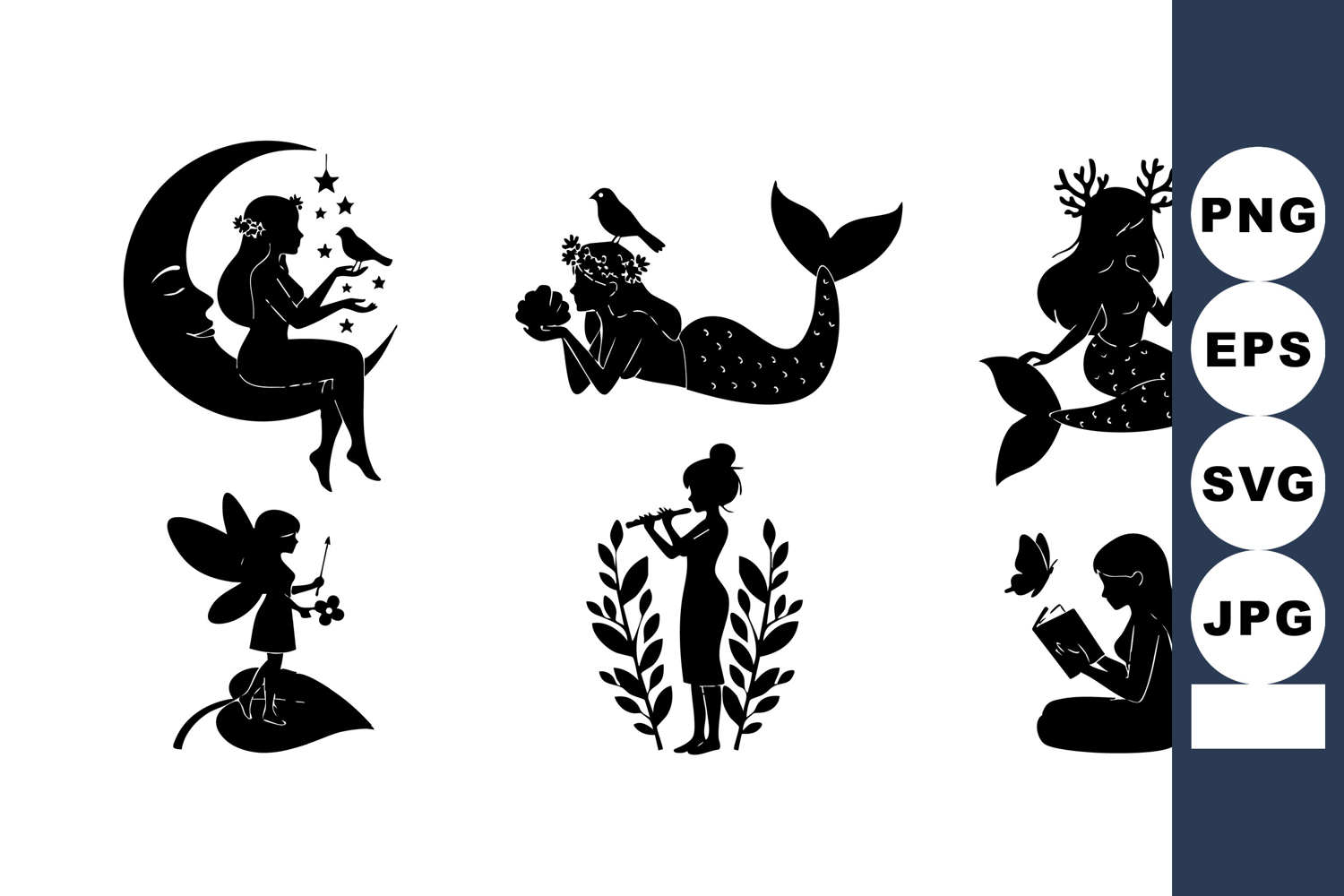 Similar Design Products to Mermaid Fairy Woman Reading Moon Silhouette Vector