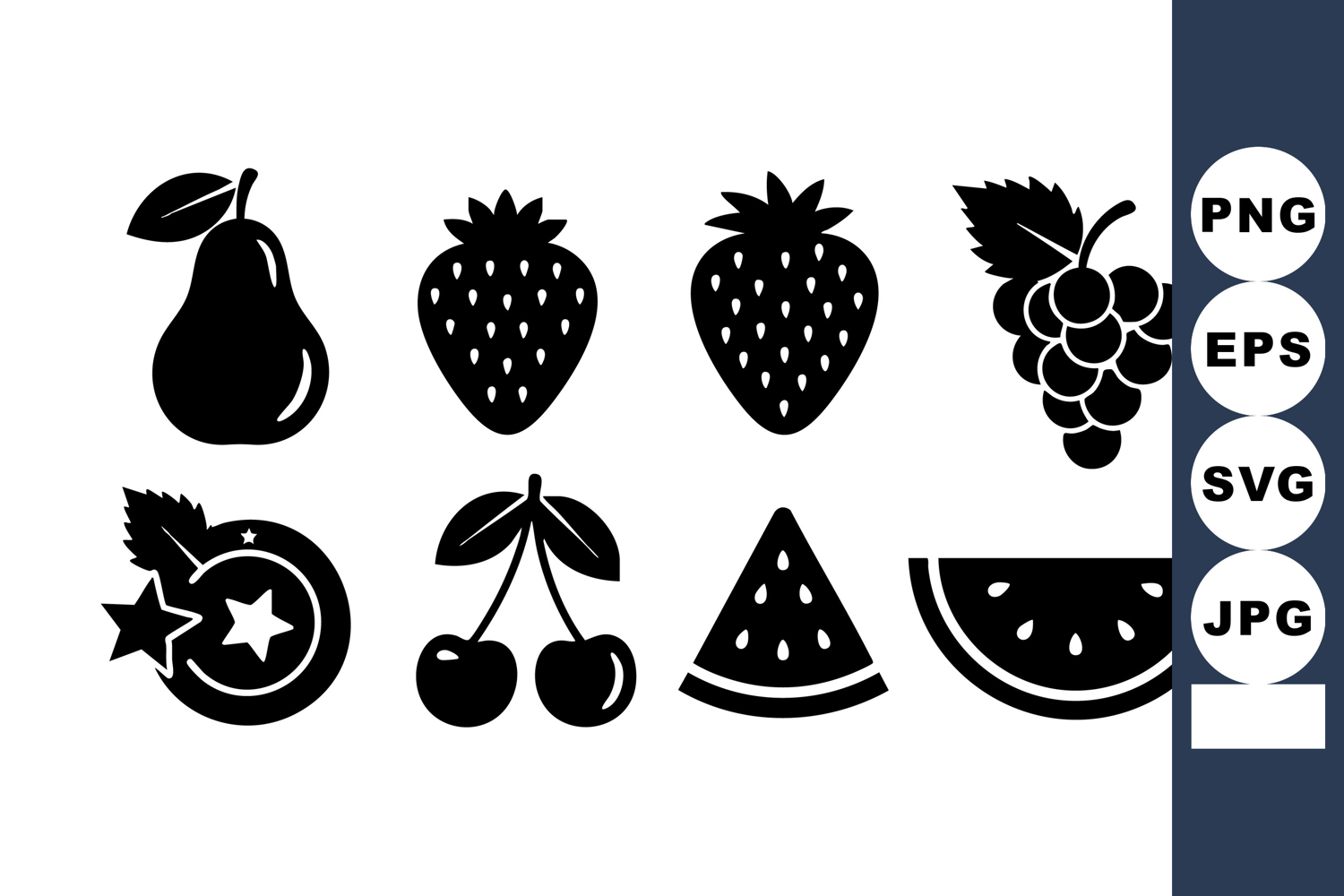 Fresh Fruit Design Summer Fruit Vector Flat Style Icons Fruit Icons Vector Black Fruit Icons Pear Strawberry Grape Cherry Watermelon Star Vector Fruit Illustrations Sweet Fruit Icons Organic Fruit Icons