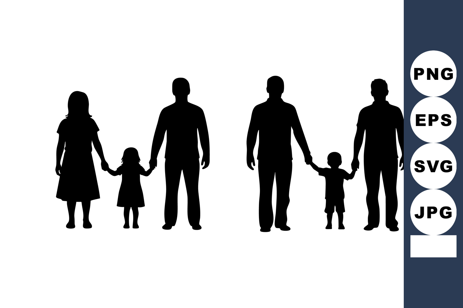 Simple Clean Design White Background Vector Family Silhouettes Holding Parents Holding Hands Black Silhouette Family Father Mother Children Happy Family Unity Parent Child Connection Teamwork Parenthood Family Minimal Classic Family