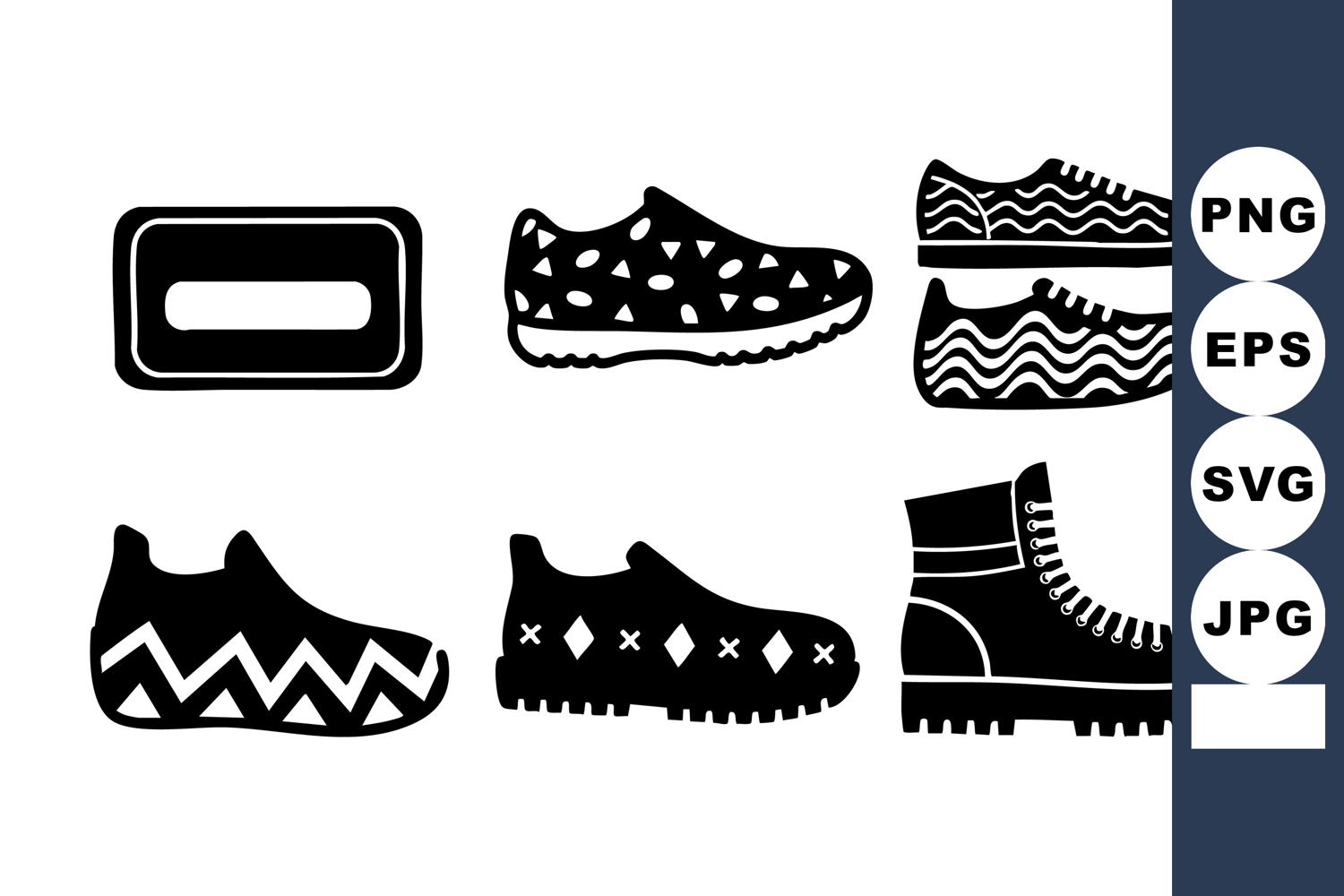 This vector image features black silhouettes of different shoe types including sneakers boots and casual footwear in a simple and bold style perfect for design use calm