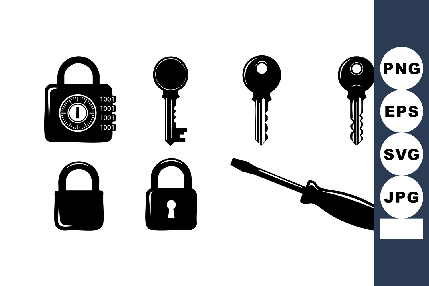 Set of Security Lock Keys and Screwdriver Icons example image 1