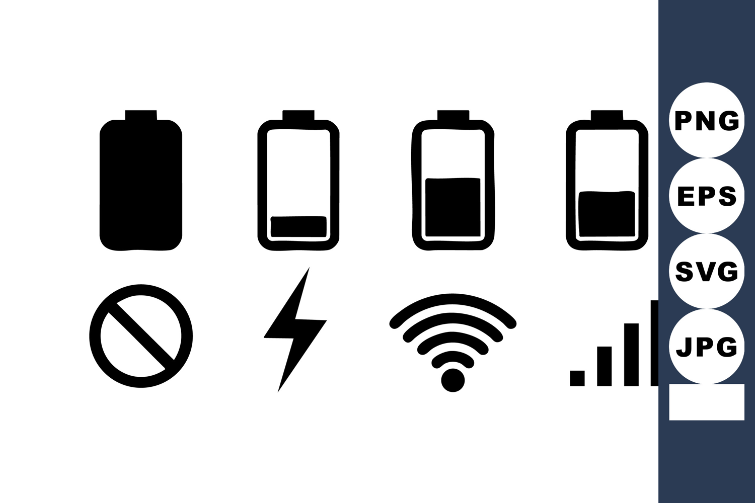 Battery Icons Set Charge Power Signal Strength Vector example image 1