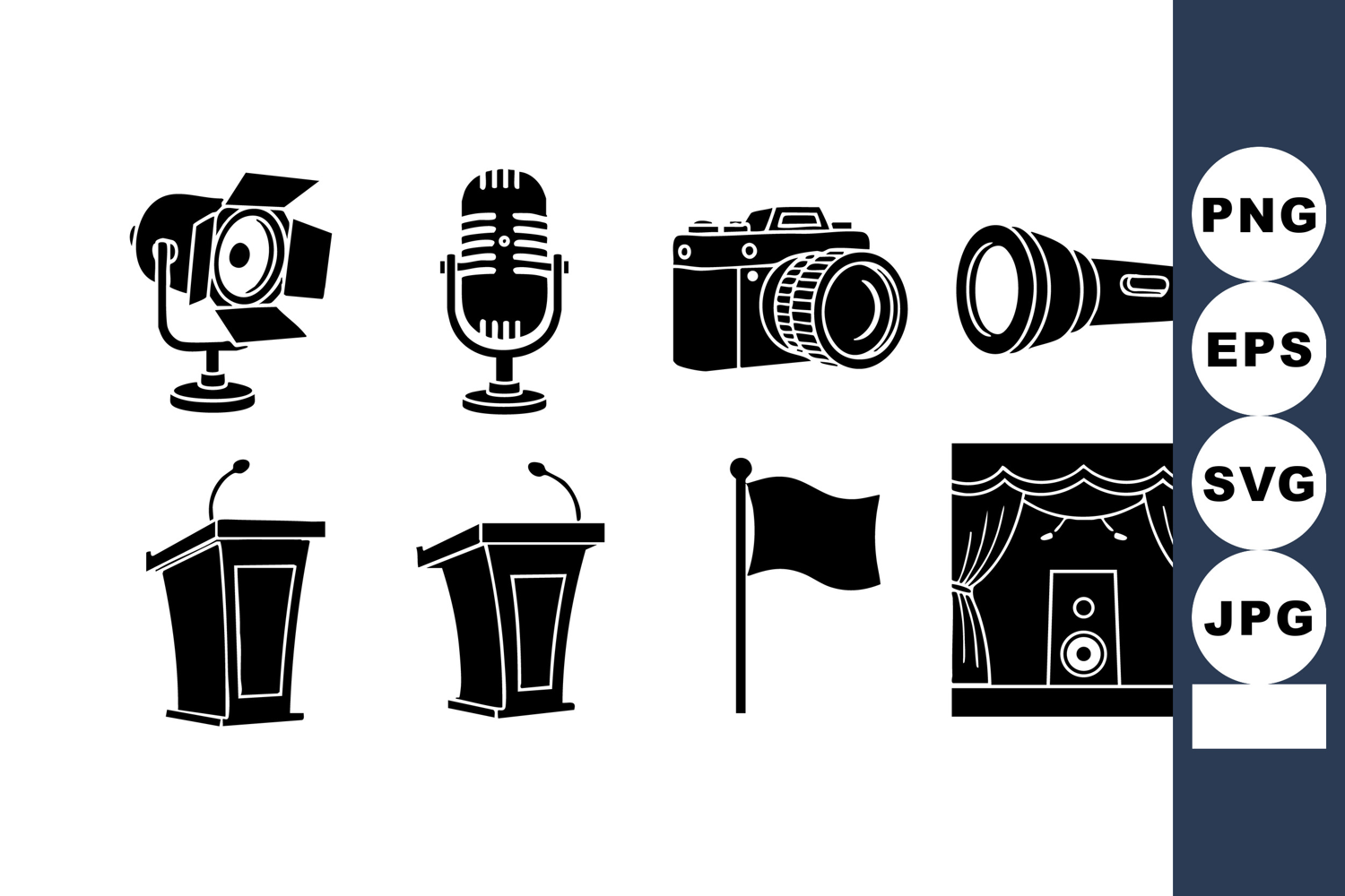 Photography Microphone Flashlight Podium Flag Stage Icons example image 1
