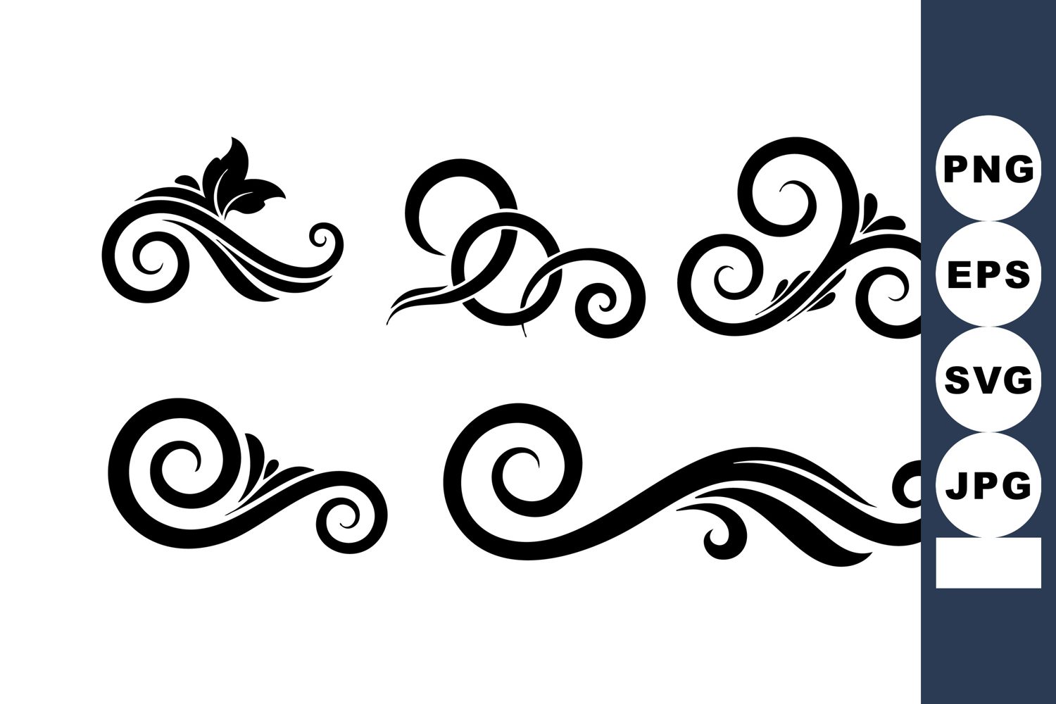 Decorative Floral Swirl Vector Elements Set Black Style example image 1