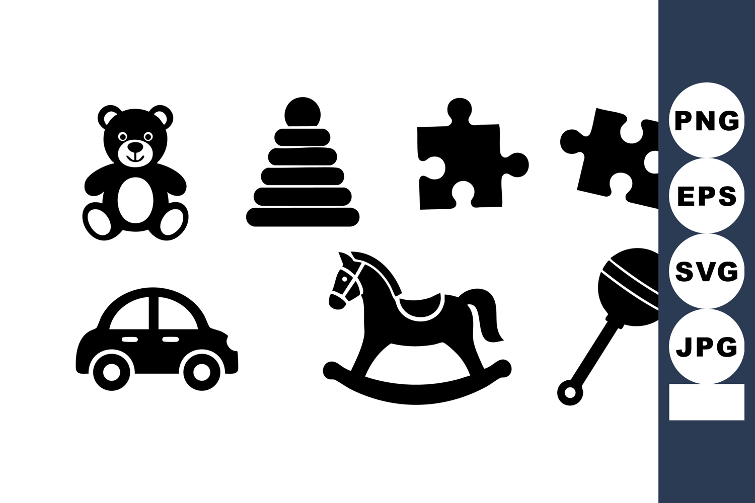 Teddy Bear Toy Rocking Horse Silhouette Toy Car Vector Puzzle Piece Icon Children Toy Icons Pyramid Ring Toy Baby Rattle Icon Black Toy Shapes Infant Play Objects Simple Toy Design