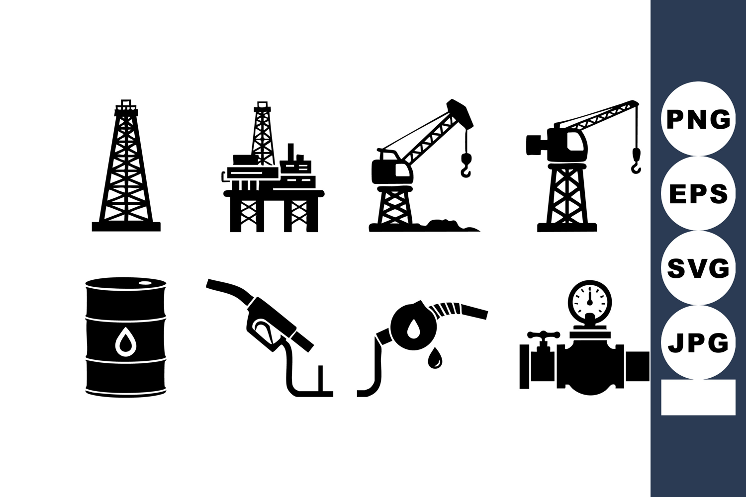 Black Silhouette Icons Oil Drilling Rig Oil Drilling Platform Oil Drilling Pump Oil Drilling Barrel Oil Drilling Fuel Oil Drilling Gas Oil Drilling Meter Oil Drilling Pipeline Oil Industry Equipment