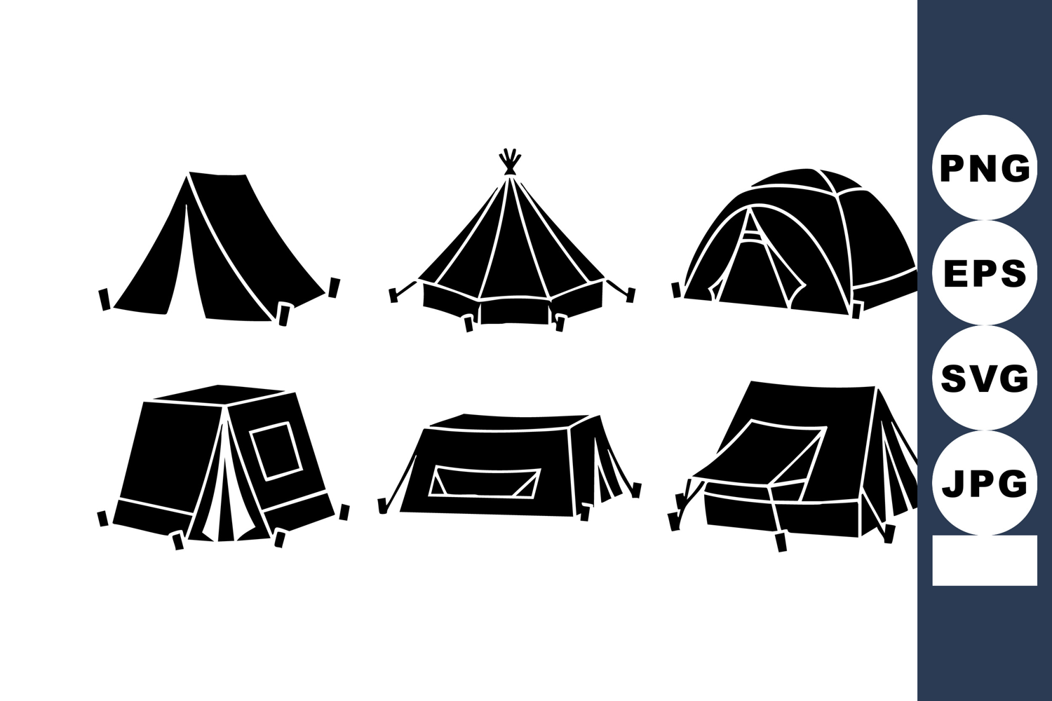 Similar Design Products to Six Black Camping Tent Silhouettes Vector