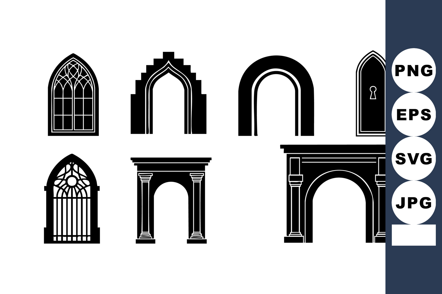 Gothic and Classic Arch Window Door Vector Collection example image 1
