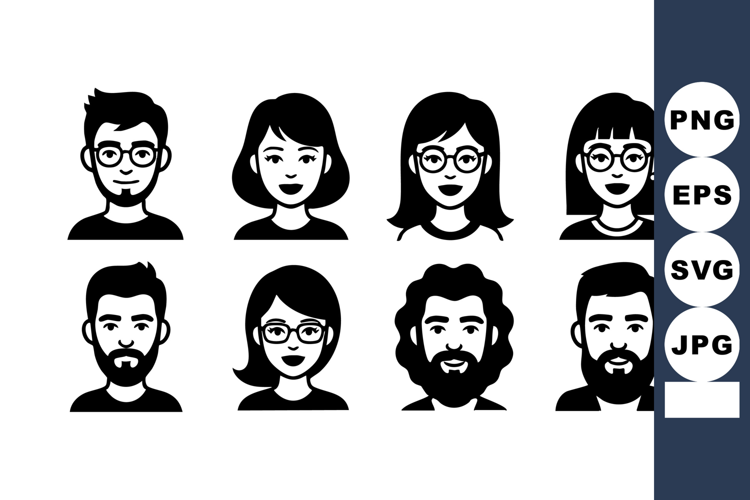 Black And White Simple Vector Illustration Female Avatar Icons Minimalistic Avatar Design Diverse Male Female Male Avatar Icons Icons With Glasses Icons With Beards Neutral Mood Avatars Clean Silhouette Icons