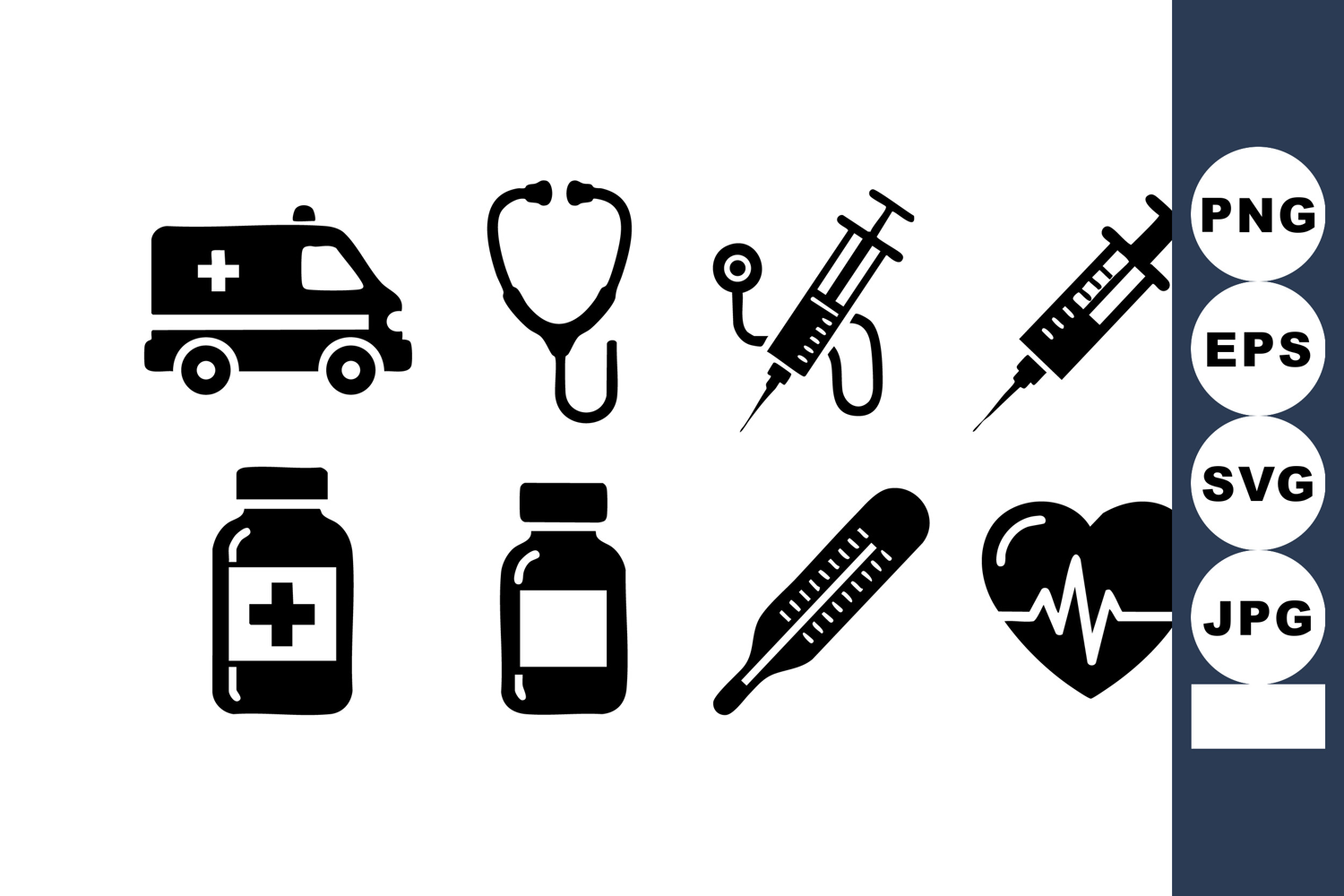 Medical Icons Set Medicine Bottle Icon Health Care Icons Ambulance Icon Vector Stethoscope Icon Design Syringe Icon Vector Thermometer Icon Vector Heart Pulse Icon Emergency Medical Icons Hospital Clinic Icons