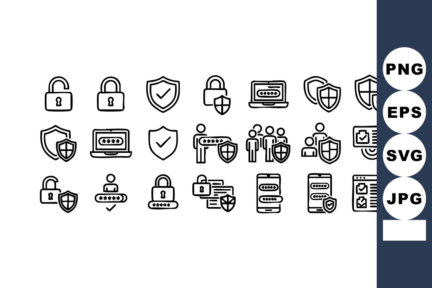 Security Icon Set Digital Security Icons Line Style Icons Padlock Shield Icons User Password Symbols Digital Protection Elements Privacy Icon Vector Secure Login Icons Shield User Icon Password Protection Icon