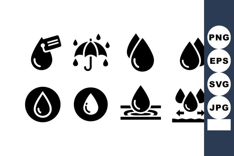 Water Drop Umbrella Splash Icons Vector Set example image 1
