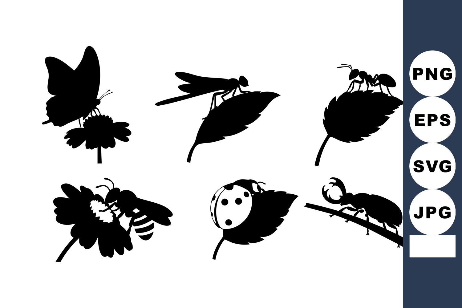 Insect Silhouettes Butterfly Ladybug Bee Vector example image 1
