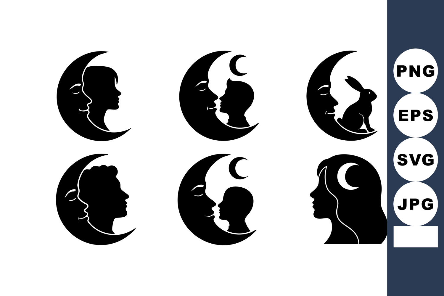 Black Silhouette Moon Simple Design Calm Woman Face Profile Child Rabbit Silhouette Crescent Moon Shape Night Scene Vector Peaceful Concept Idea Shadow Fantasy Nature Quiet Mystery Symbol Nightscape Lunar Imagination