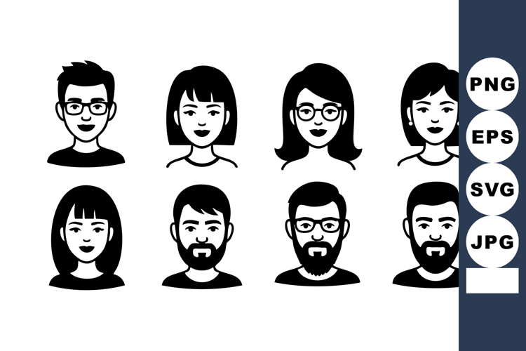 Diverse Male Female Avatars Flat Vector Icons example image 1