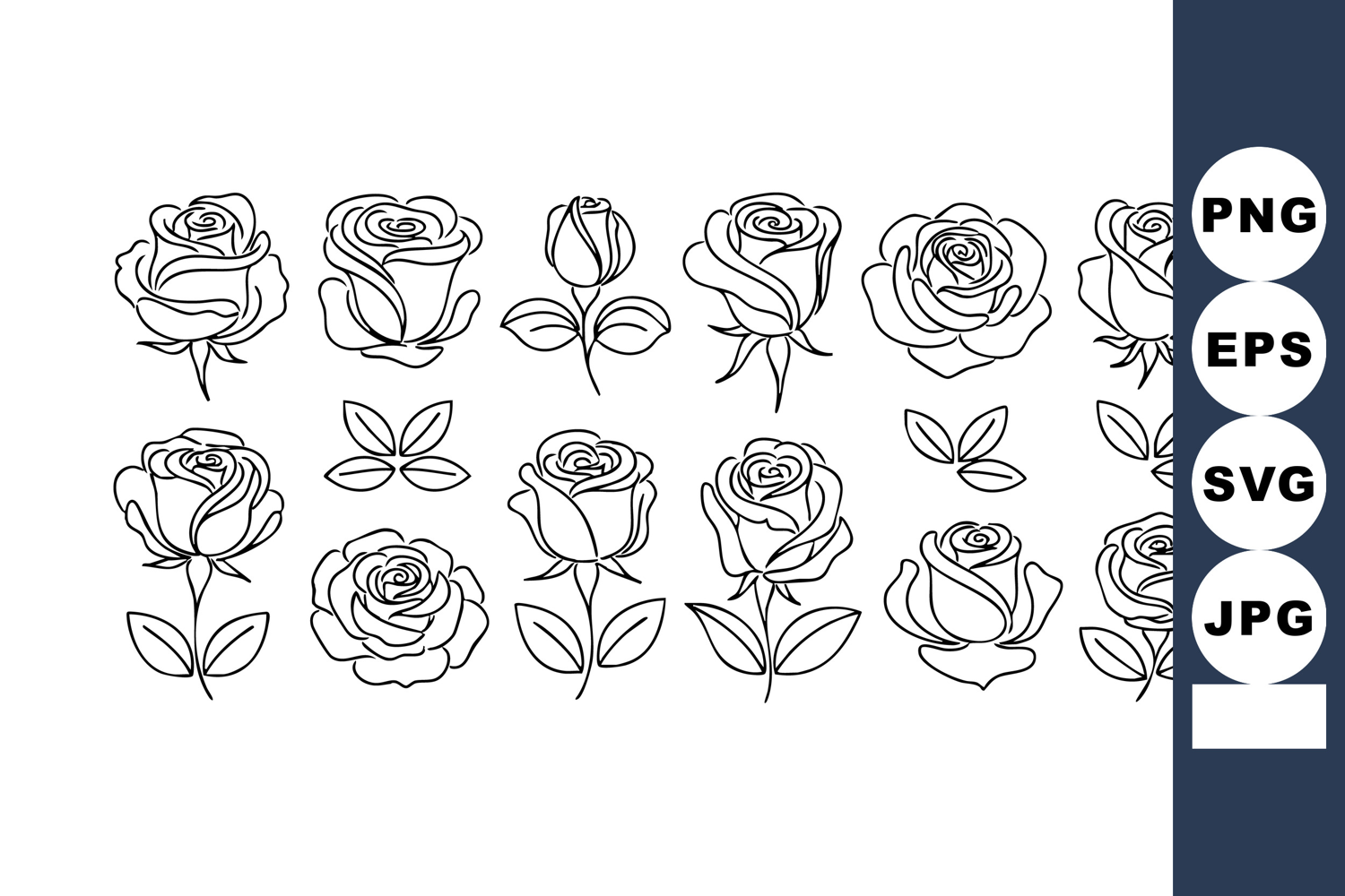 Rose Line Art Collection Flower Designs Leaves example image 1
