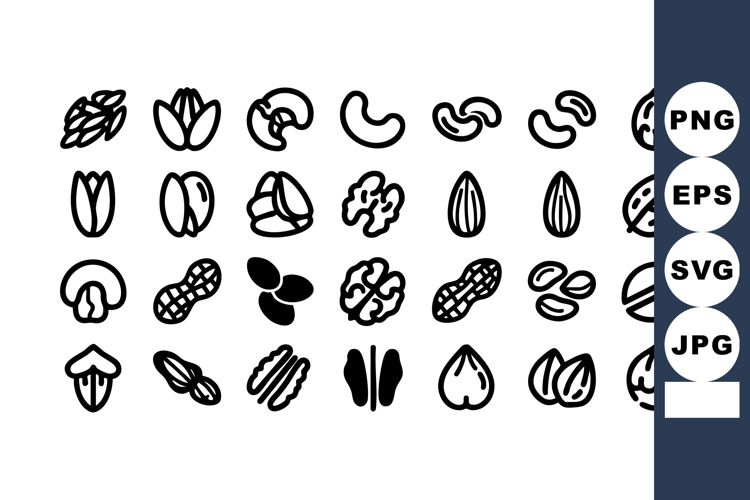 Nut and Seed Vector Icon Set Black Outline example image 1