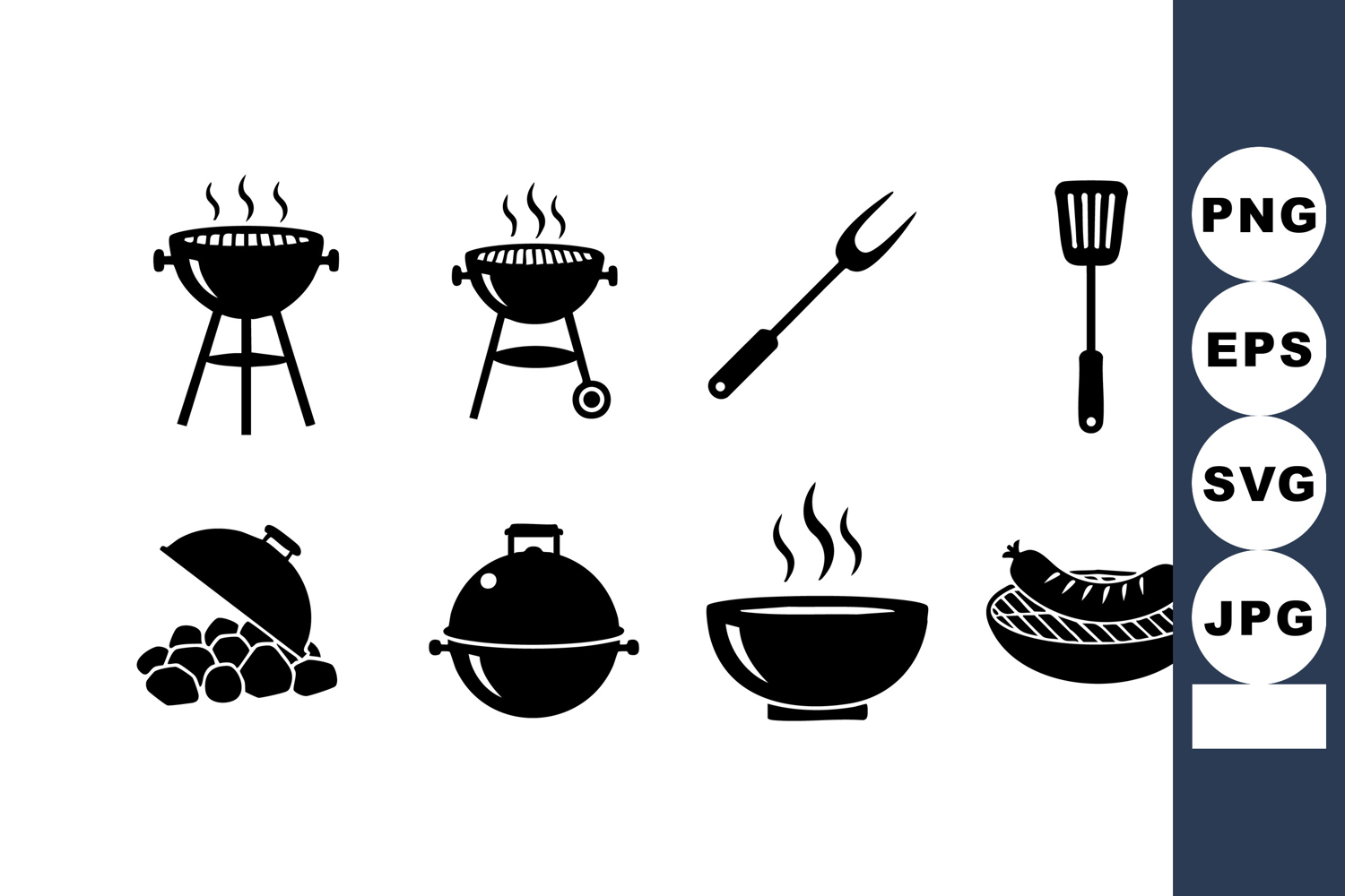 Barbecue Grill Utensils Sausage Cooking Icons Set example image 1
