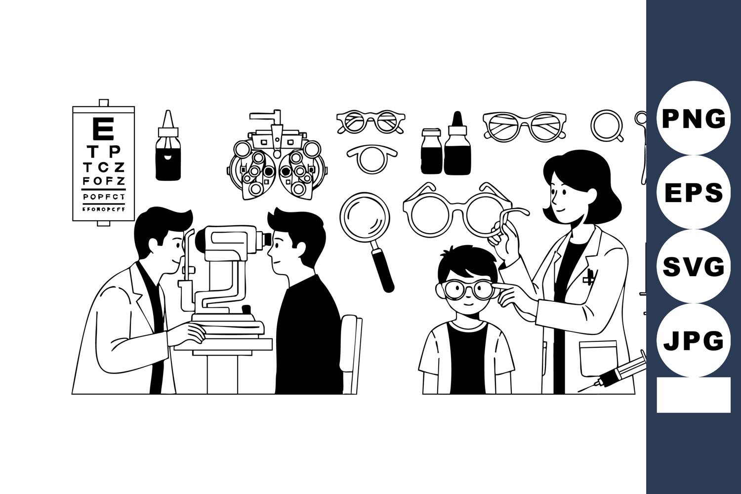 Optometry Eye Doctor Testing Patient Vision Equipment Vector example image 1