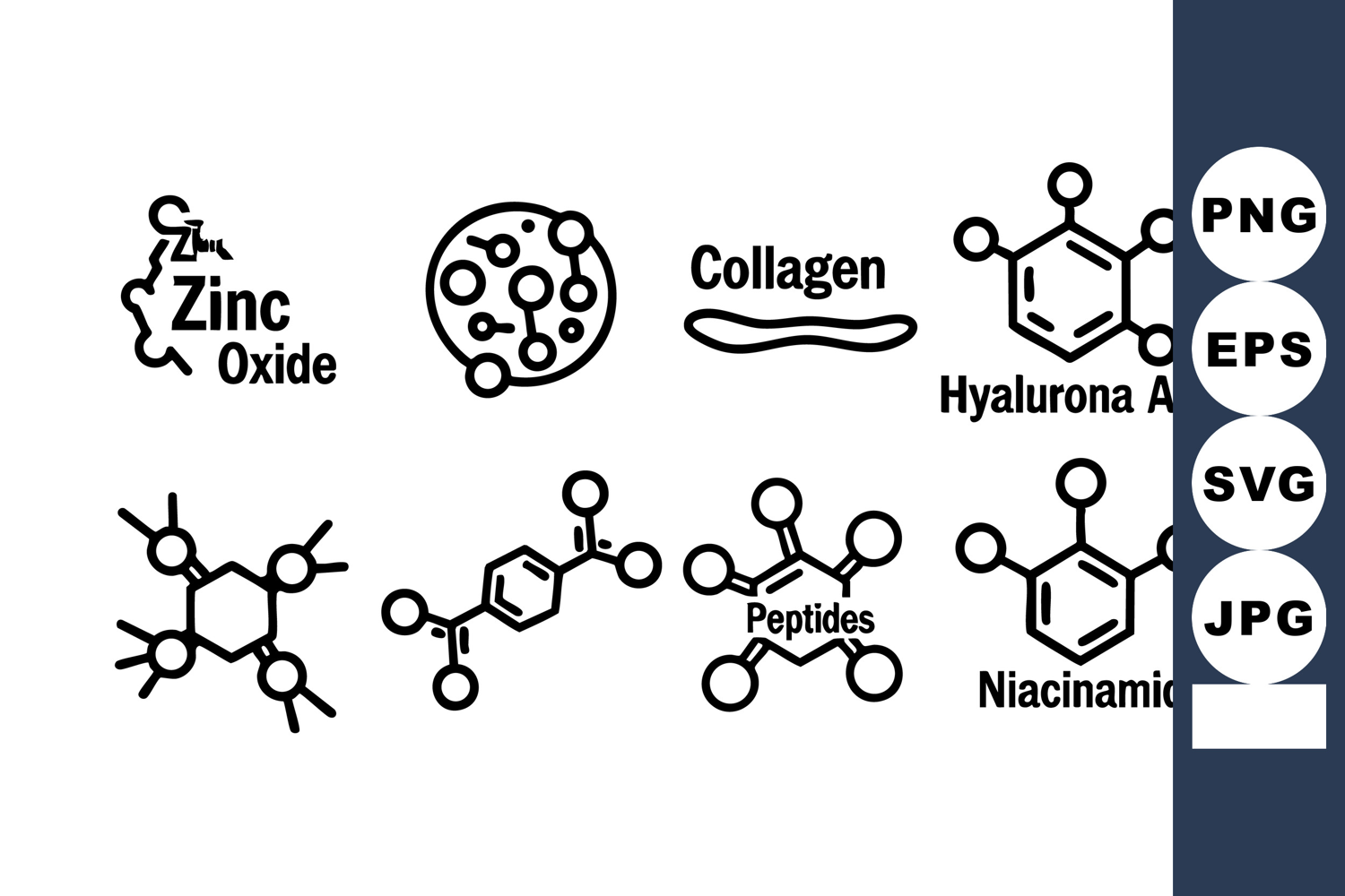 Zinc Oxide Collagen Collagen Hyaluronic Acid Hyaluronic Acid Peptides Acid Peptides Niacinamide Peptides Niacinamide Chemical Niacinamide Chemical Structures Chemical Structures Skincare Structures Skincare Molecules Skincare Molecules Vector Molecules Vector Illustration