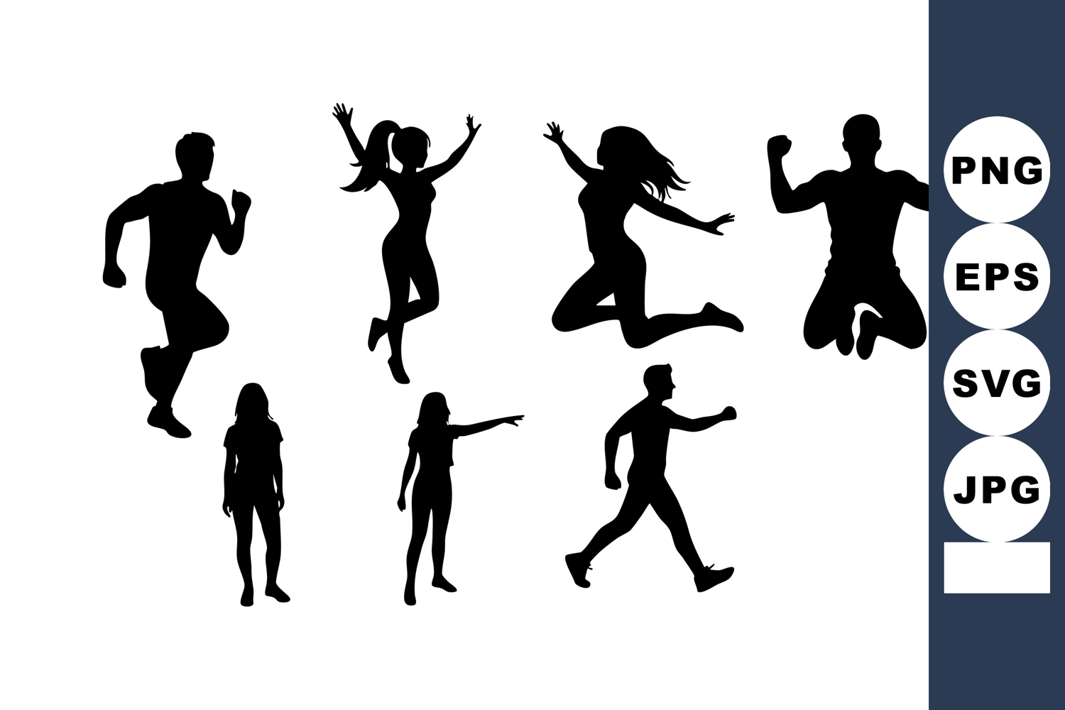 Silhouettes of People Running Jumping Dancing Vector example image 1
