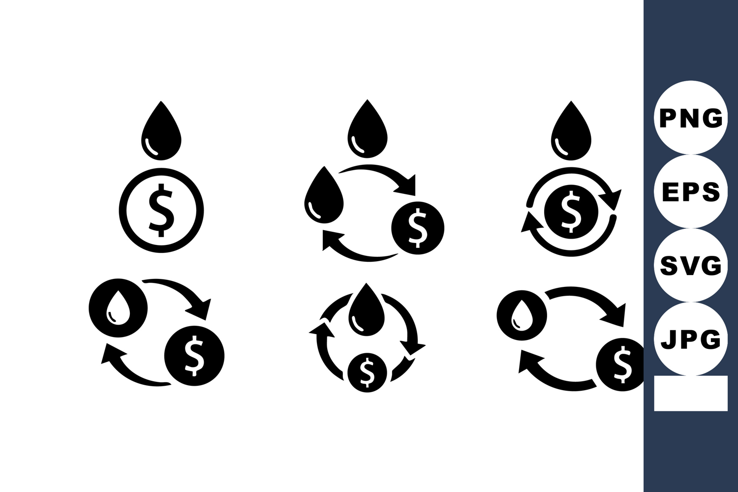 Oil Drop Dollar Coin Recycling Cycle Icons