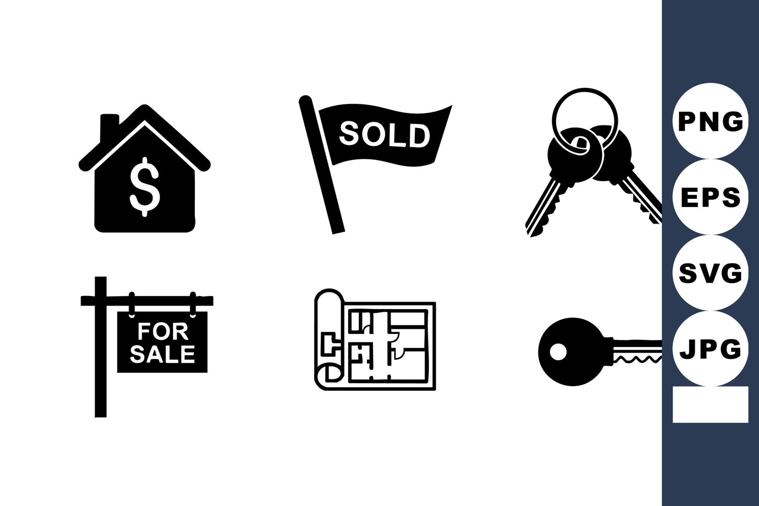 Real Estate Icons Estate House Sale House Sale Sold Sale Sold Keys Keys Blueprint Plan Blueprint Plan Design Design Icon Symbol Property Home Dollar Dollar Sign Flag Sign Flag For