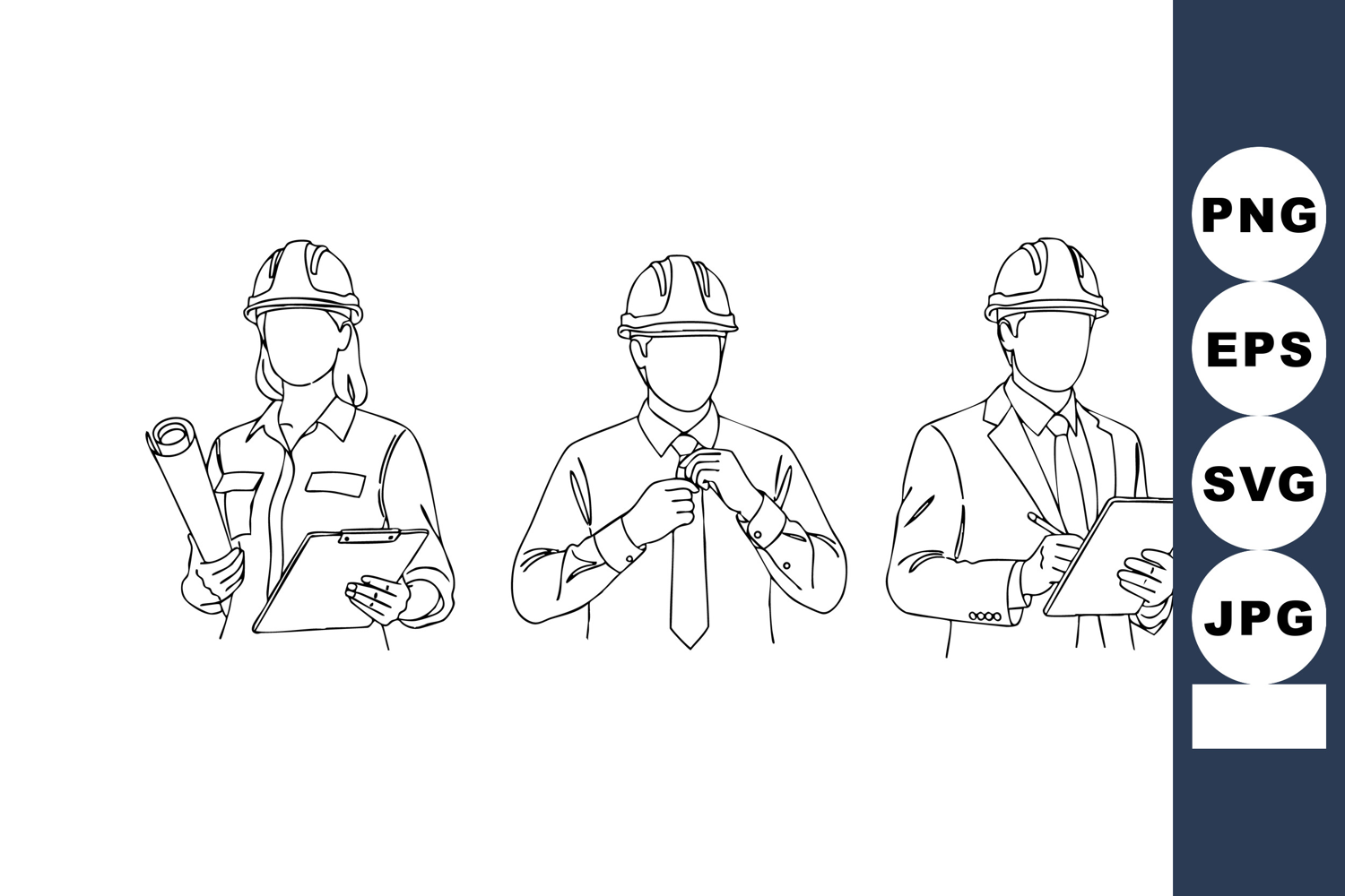 Engineers Holding Blueprint Clipboard Vector Line Art example image 1