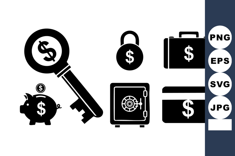 Piggy Bank Icon Financial Security Icons Key With Dollar Locked Padlock Symbol Safe Money Protection Briefcase Credit Card Money Protection Savings Secure Financial Vector Business Economy Finance Investment Wealth Cash