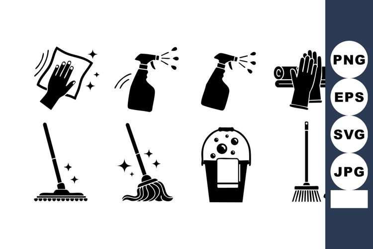 Cleaning Icons Mop Spray Bottle Gloves Bucket Cloth example image 1