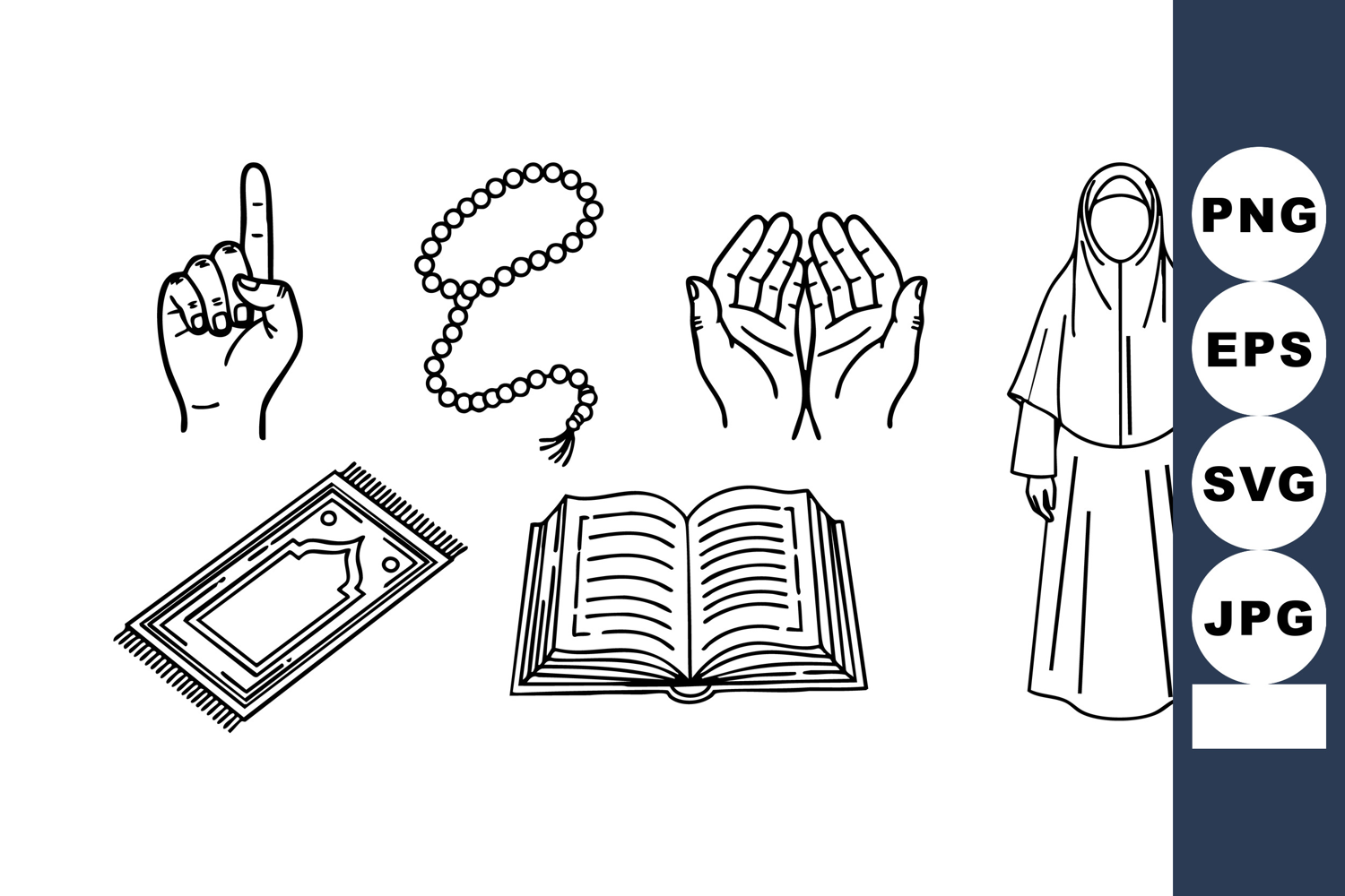 Islamic Prayer Icons Set Vector Illustration example image 1