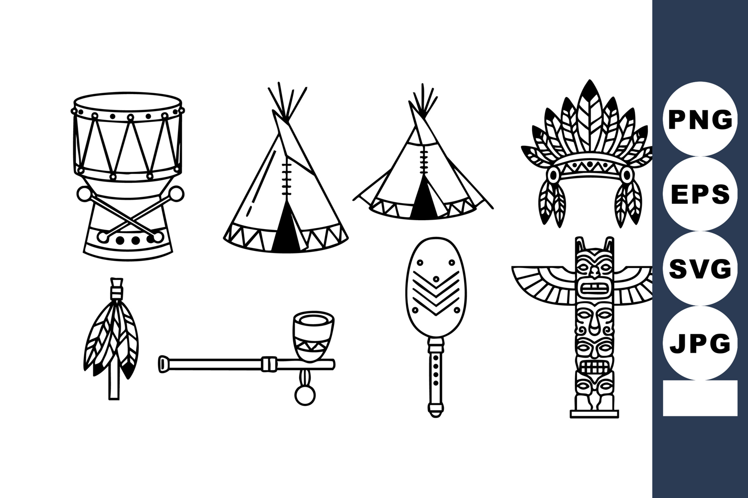 Native American Symbols Drum Teepee Feather Pipe Rattle example image 1