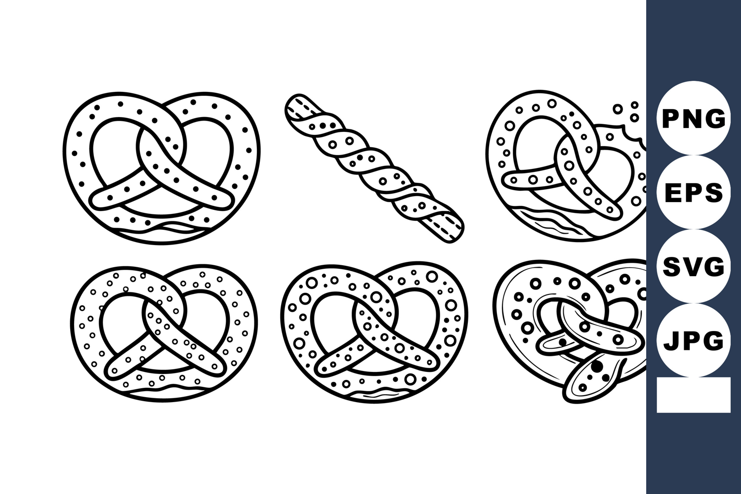 Food Vector Illustration Pretzel Black Outline Bakery Snack Food Six Different Designs Whole And Bitten Simple Clear Shapes Cheerful Food Art Crispy Salted Bread Snack Food Meal Baking Dough Bread