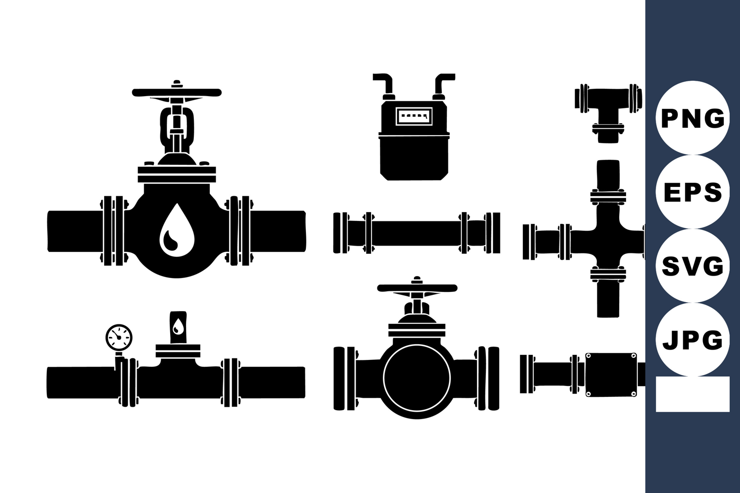 Water Flow Control Water Pipeline Valve Pipeline Valve Meter Valve Meter Icon Plumbing Pipe System Industrial Piping System Pipeline Meter Gauge Black Valve Silhouette Meter Pipe Connector Pipeline Pressure Gauge