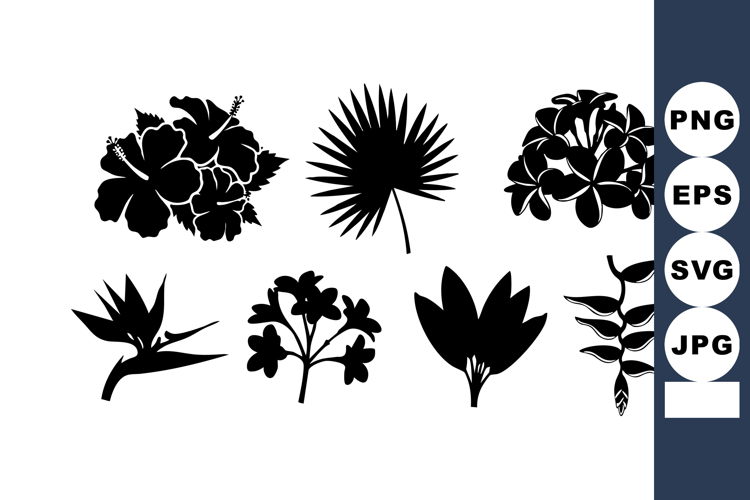 Black Silhouette Tropical Flowers and Leaves Vector example image 1