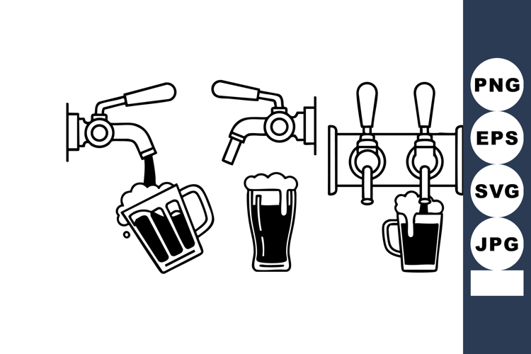 Glass Beer Mug Beer Tap Pouring Dark Beer Mug Beer Foam Head Beer Tap Handle Pouring Beer Foam Dark Beer Draft Beer Mug Glass Beer Tap Vector Black White Beer