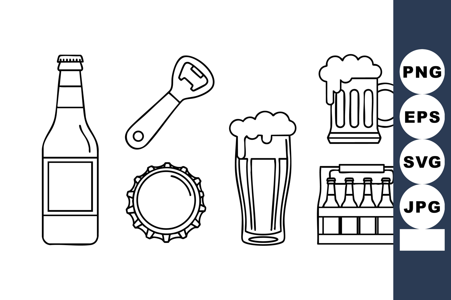 Beer Bottle Opener Cap Mug Six Pack Vector example image 1