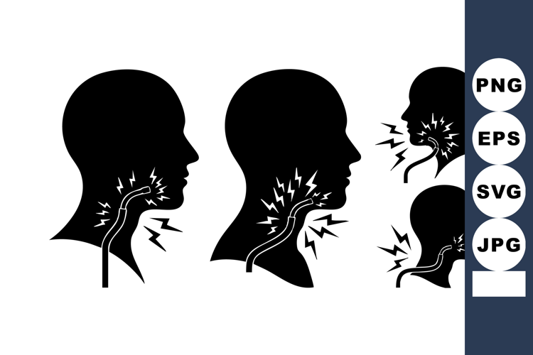 Human Body Anatomy Throat Pain Icons Neck Discomfort Silhouettes Health Concept Vectors Lightning Bolt Symbols Black Profile Silhouettes Pain Indication Vectors Medical Symptom Icons Health Emergency Signs Sharp Ache Symbols