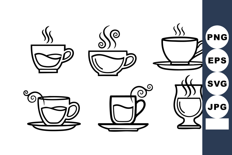 Coffee Cup Icons Hot Beverage Line Art Vector example image 1