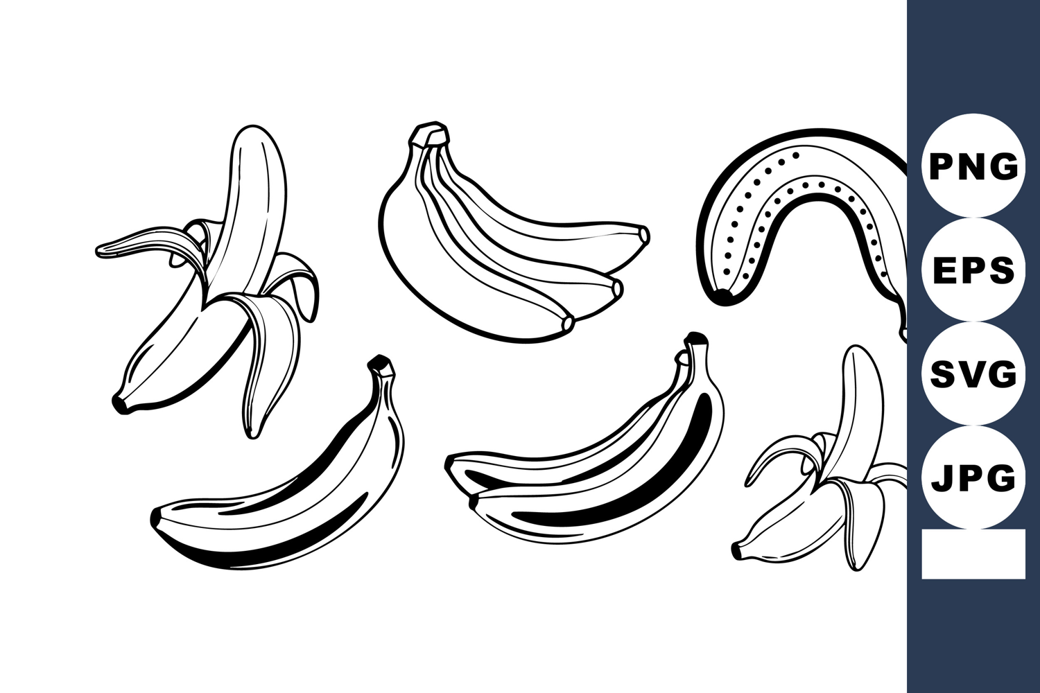 Similar Design Products to Banana Set Hand Drawn Black White Vector Illustration