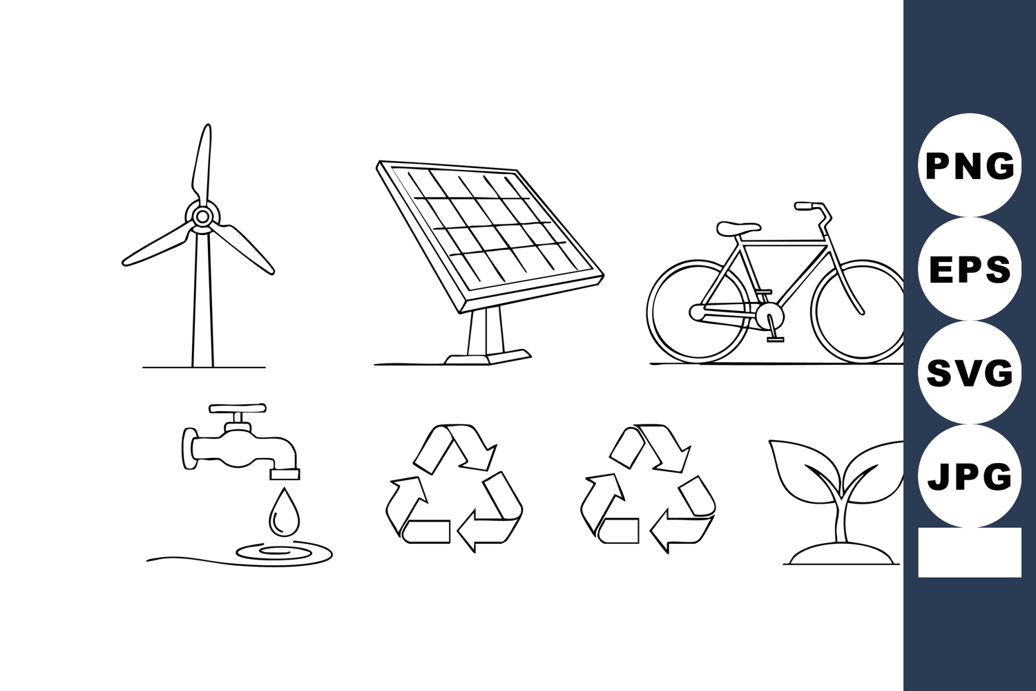 Renewable Energy Icons Wind Solar Bicycle Vector example image 1