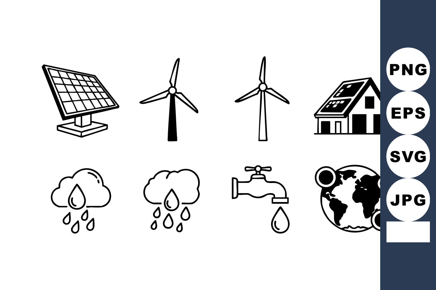 Renewable Energy Solar Panel Wind Turbine Icons example image 1
