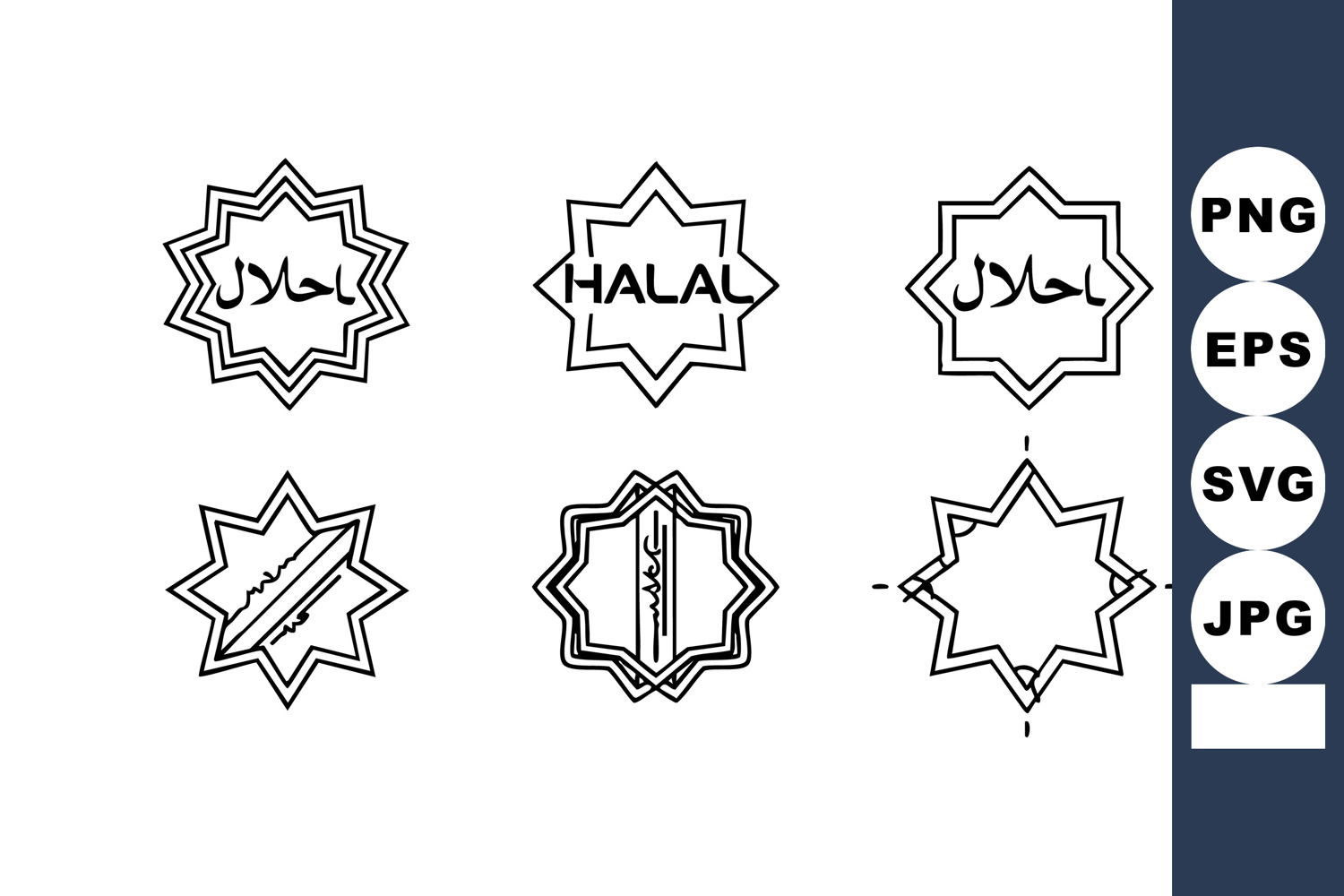 Halal Label Stamp Set Vector Outline Icons example image 1