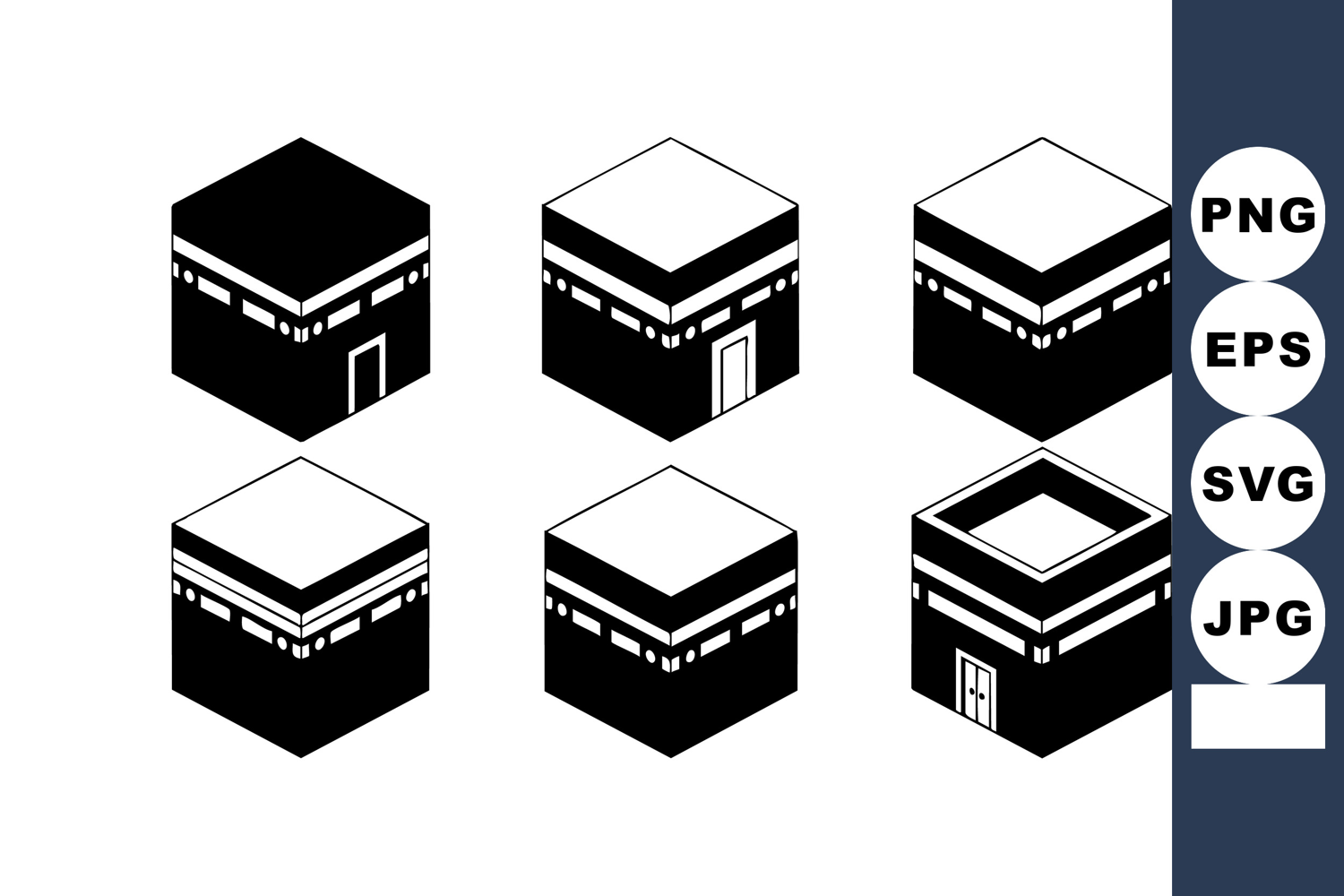 Kaaba Vector Illustration Set Black White Isometric Design example image 1