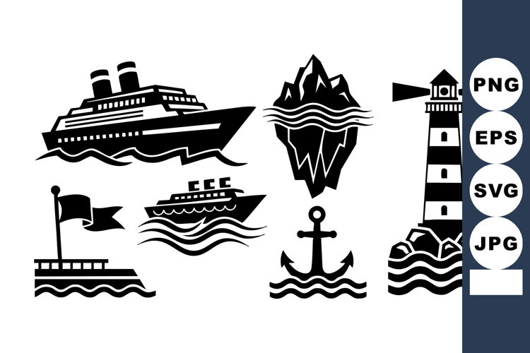 Cruise Ship Lighthouse Nautical Vector Icons Set example image 1