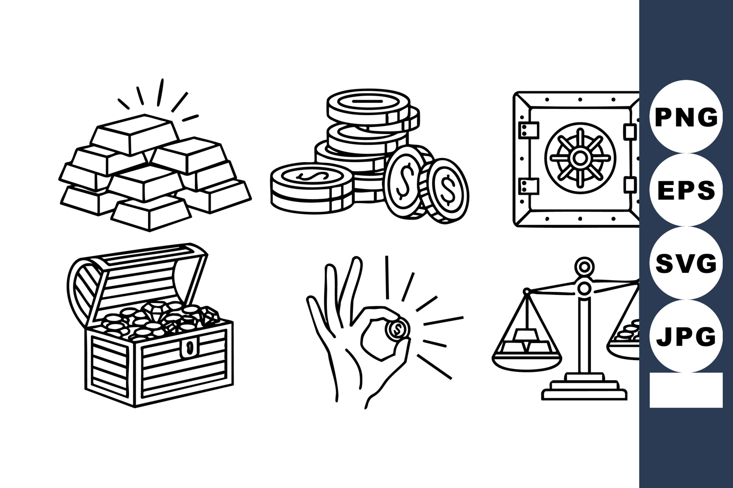 Stack Of Coins Treasure Chest Gold Gold Coins Stacks Coins Stacks Bars Safe Scales Balance Hand Gesture Okay Money Wealth Vector Secure Safe Balance Gold Bars Coins Wealth And Security