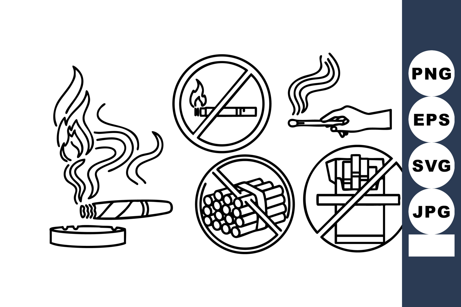 Smoking Cigar No Smoking Prohibition Icons Set example image 1