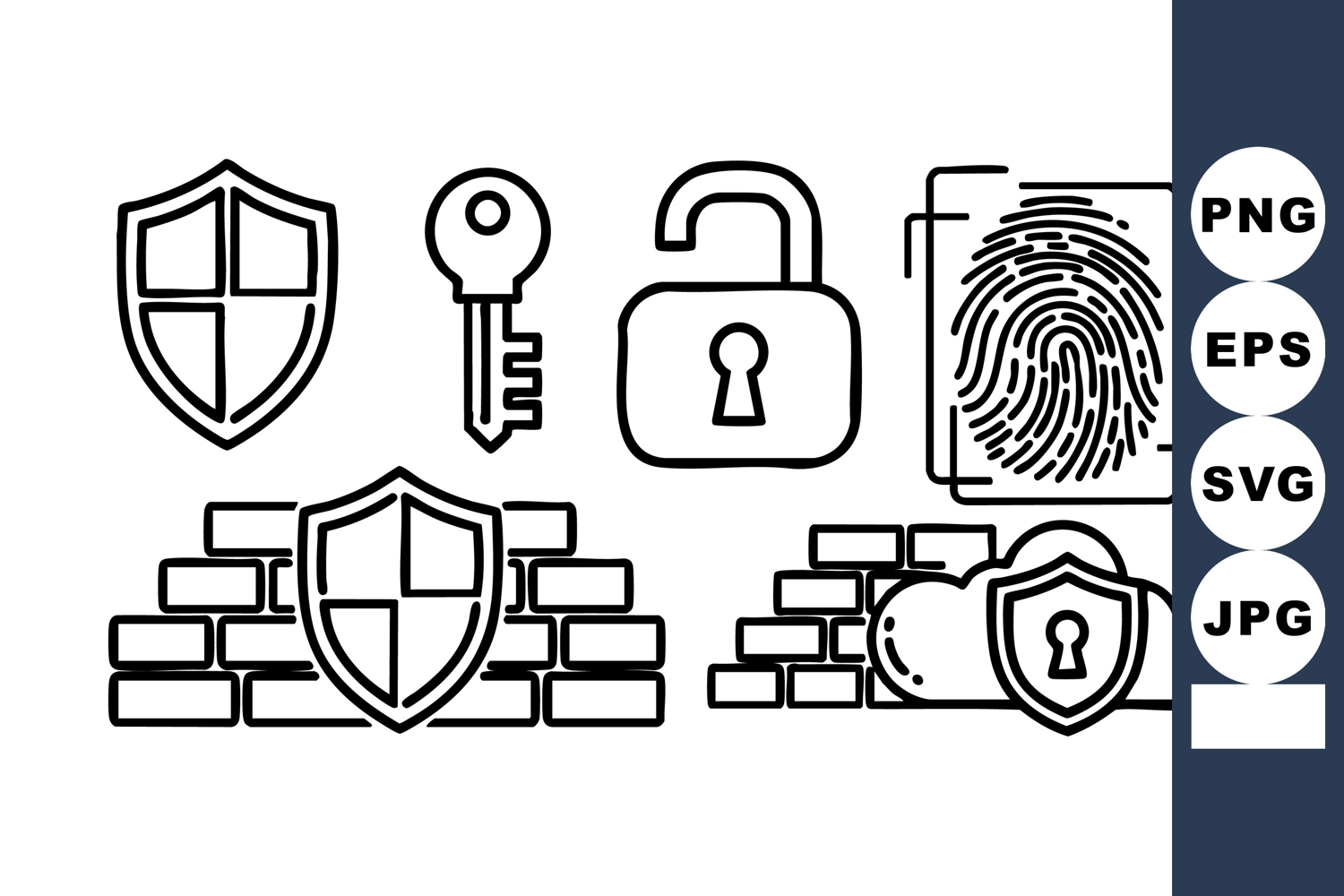 Security Icons Set Shield Key Lock Fingerprint Firewall example image 1