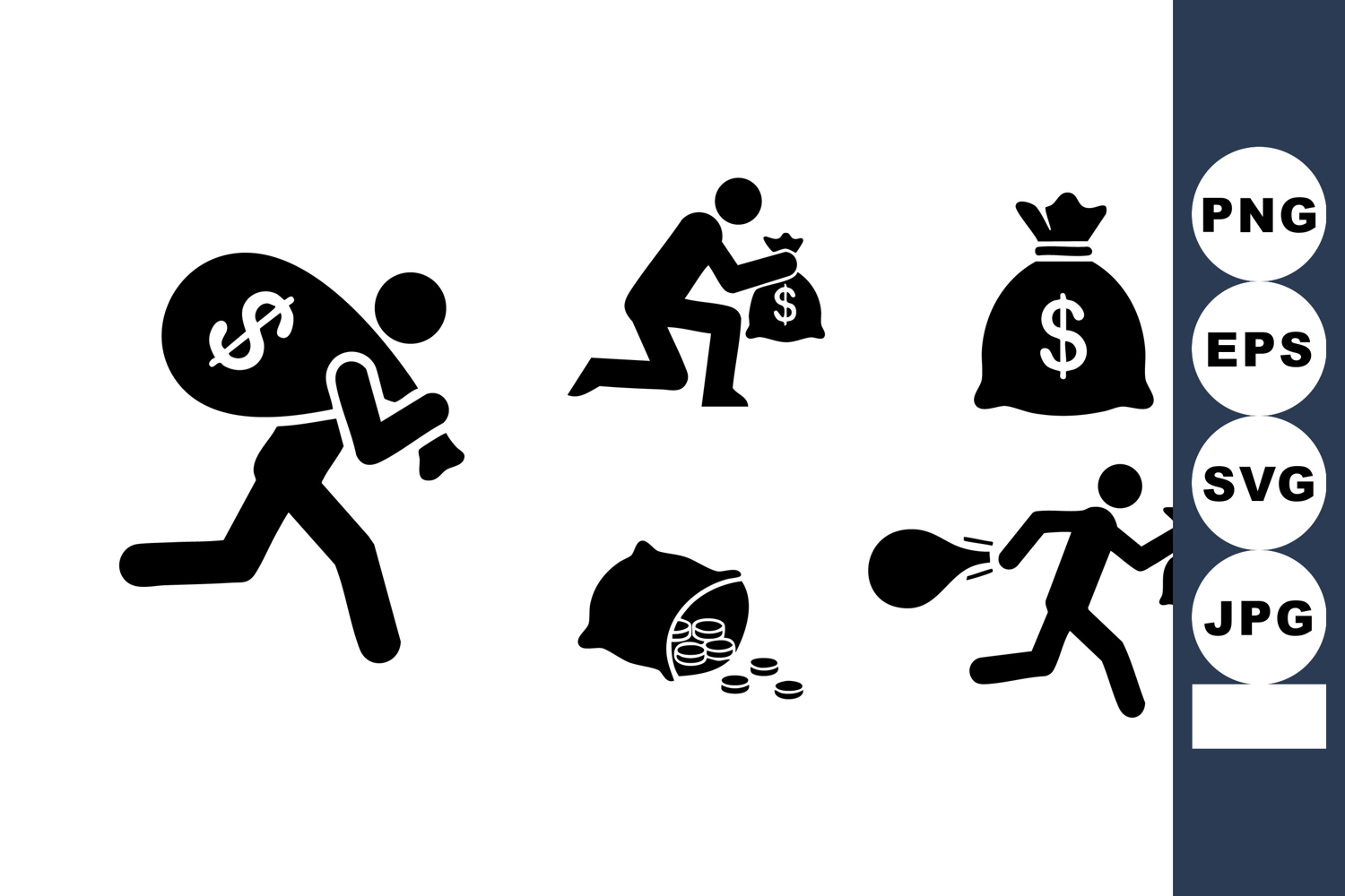 Black Vector Style Money Thief Stealing Stealing Cash Bags Bags Running Dollar Person Stealing Money Running With Dollar Dynamic Theft Robbery Bold Clear Energetic Criminal Person Figure Finance Crime Sign